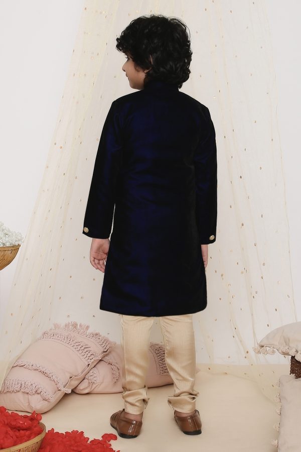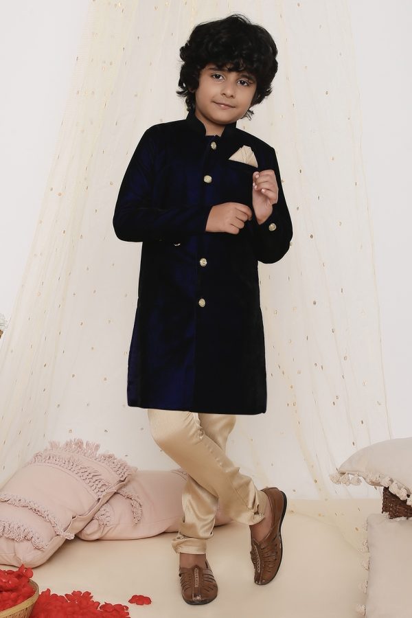 Dress your little one in royal elegance with this Velvet Kurta & Silk Pyjama Set. The plush velvet kurta paired with smooth silk pyjamas creates a regal ensemble that’s perfect for weddings, festive occasions, and grand celebrations. Crafted for both comfort and style, this outfit offers a premium ethnic look with a luxurious touch.