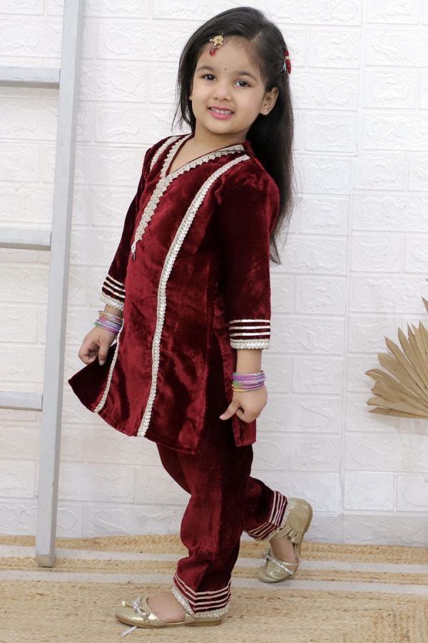 This charming Velvet Kurta and Pant Set is the perfect mix of tradition and trend for your little one. Featuring intricate lacework, playful sleeve accents, and a soft velvet finish, it’s a beautiful choice for festive gatherings, weddings, or special celebrations.